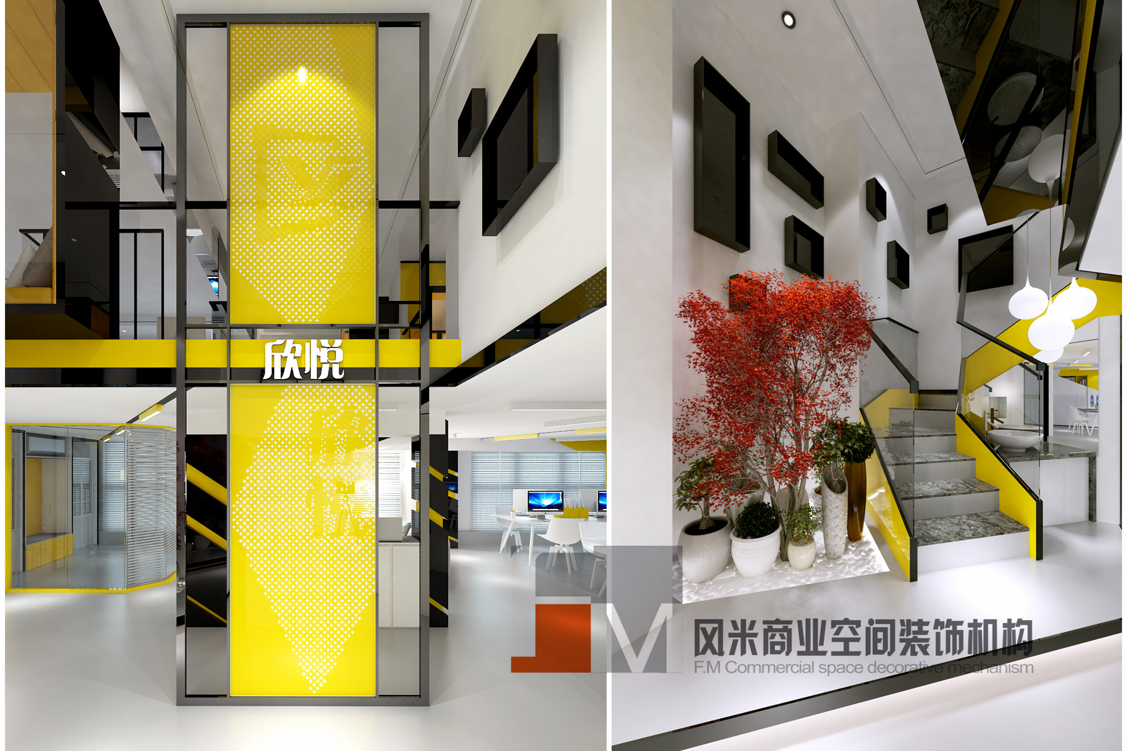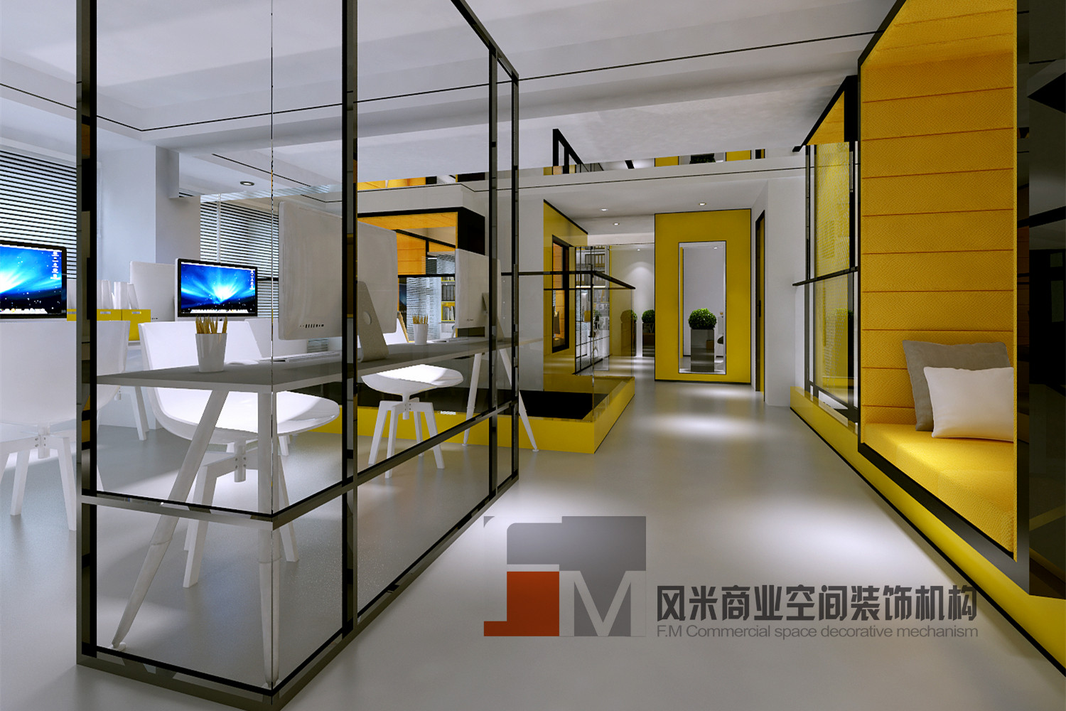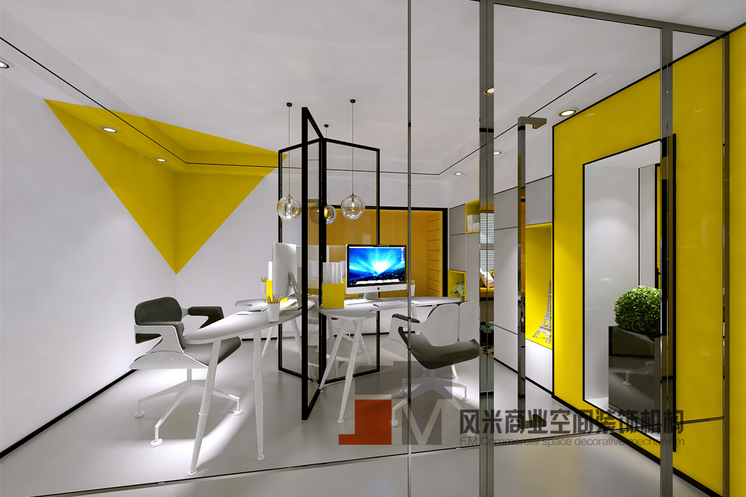 萬科大廈欣悅化妝品公司,白與黃的搭配,簡約、大氣!