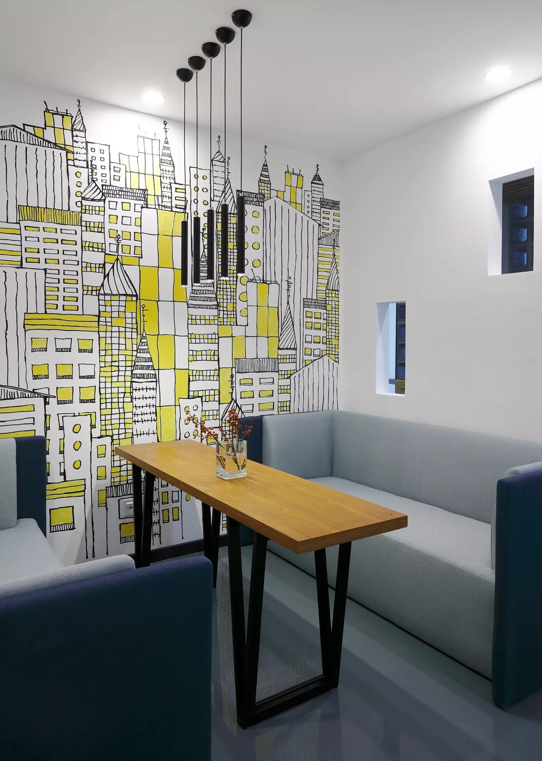 于是在這個項目中,F(xiàn)IVE SENSE以懷揣夢想和激情的年輕人為藍(lán)本,在有限的空間中預(yù)留足夠的公共區(qū),引入他們喜愛的生活場景,減少了多余的預(yù)留工位和傳統(tǒng)的封閉會議室。取而代之的是一連串有趣而具有多重實用性的中性空間。