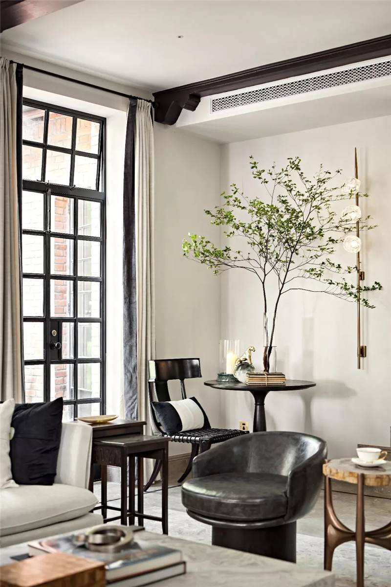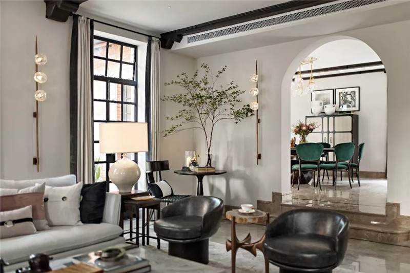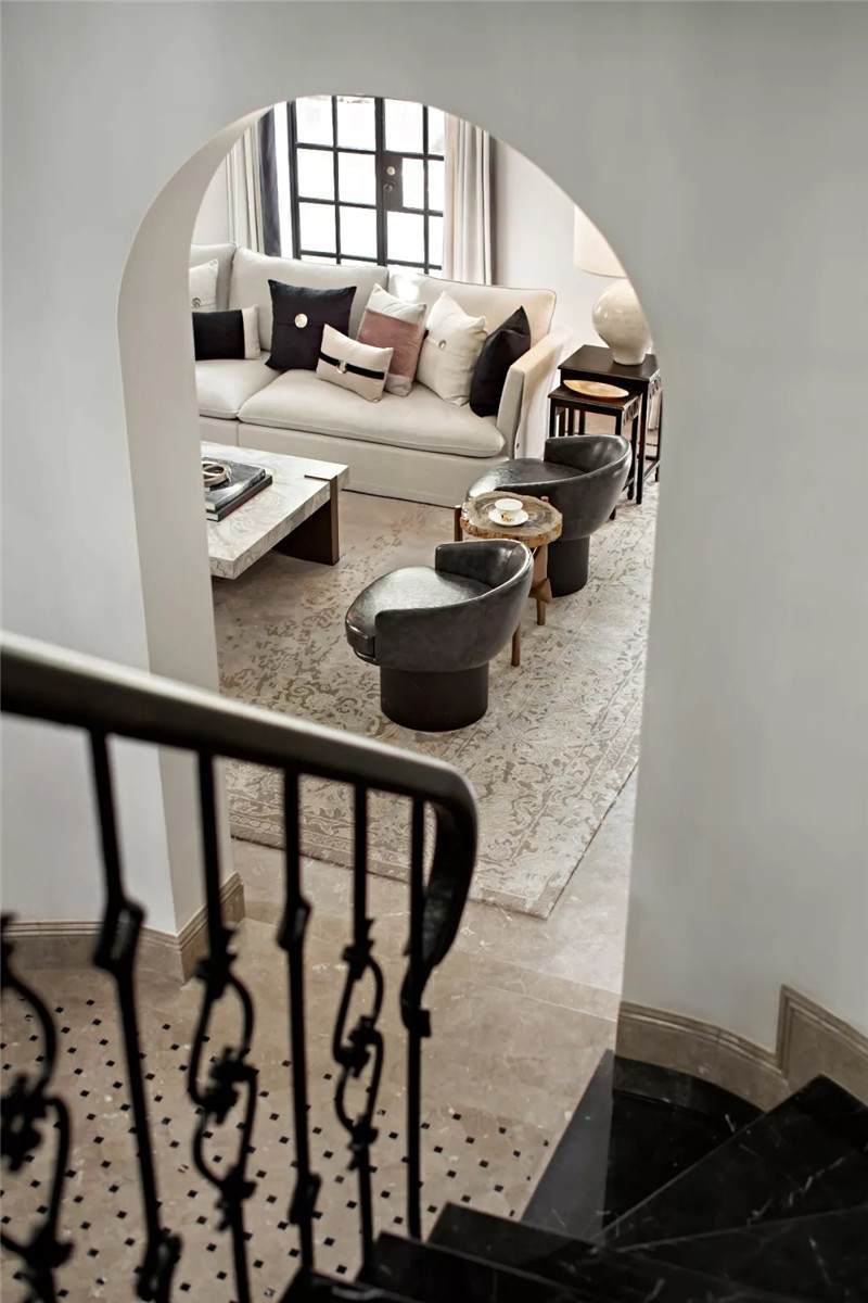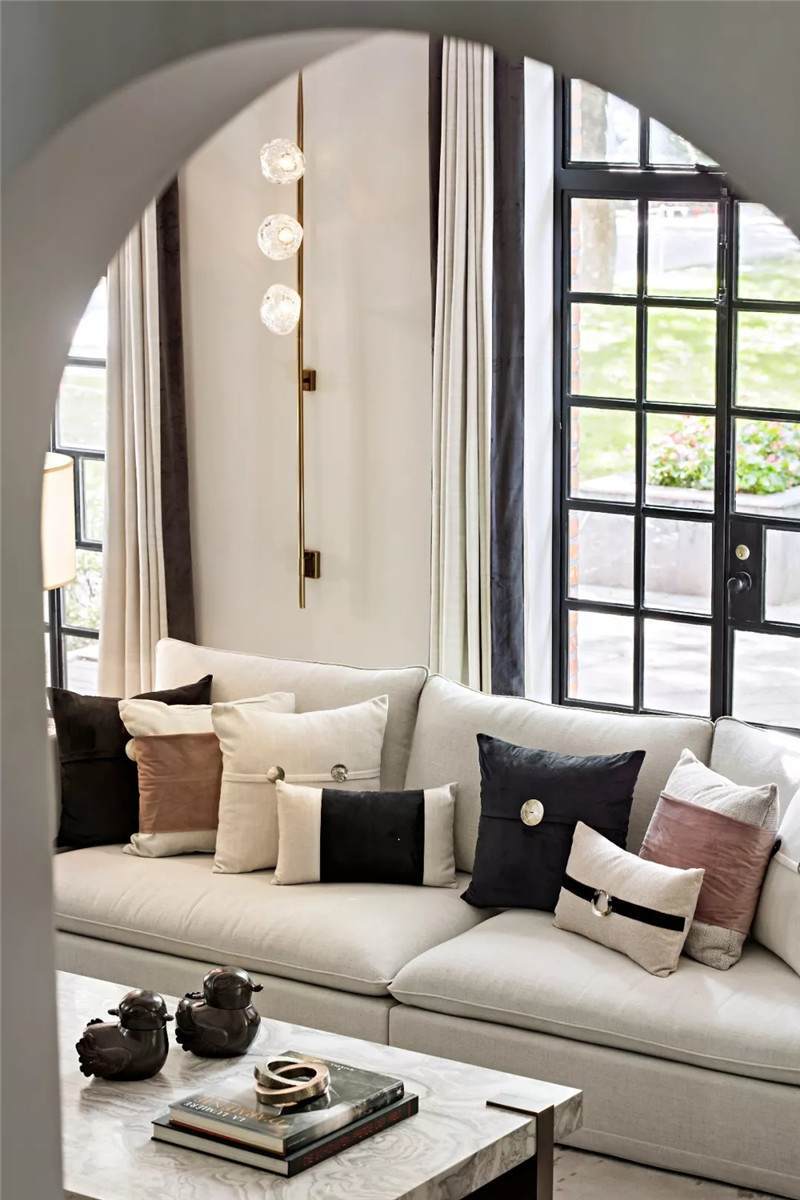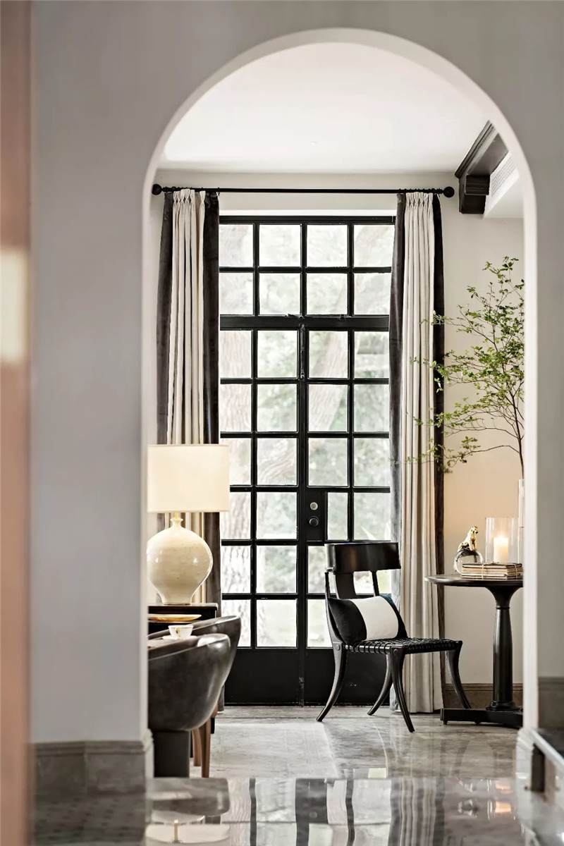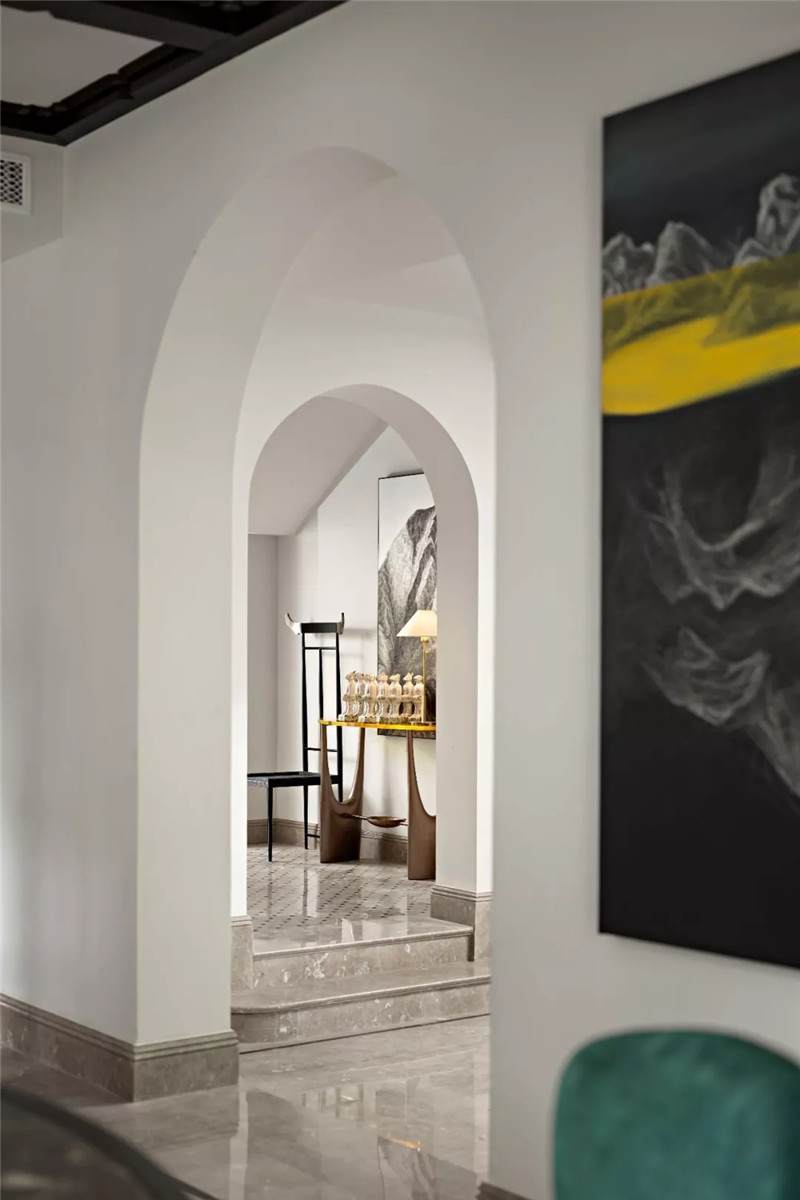 從建筑外觀到室內(nèi),拱門設(shè)計無疑是空間中最引人注目的亮點(diǎn),經(jīng)典的幾何線條在空間交匯處劃下瀟灑自由的一筆,破格又落定,促成雙空間的融合。皆因設(shè)計師黃全對細(xì)節(jié)的一絲不茍,每一個構(gòu)件都在美學(xué)態(tài)度的牽引下找到最合適的表現(xiàn)形式。