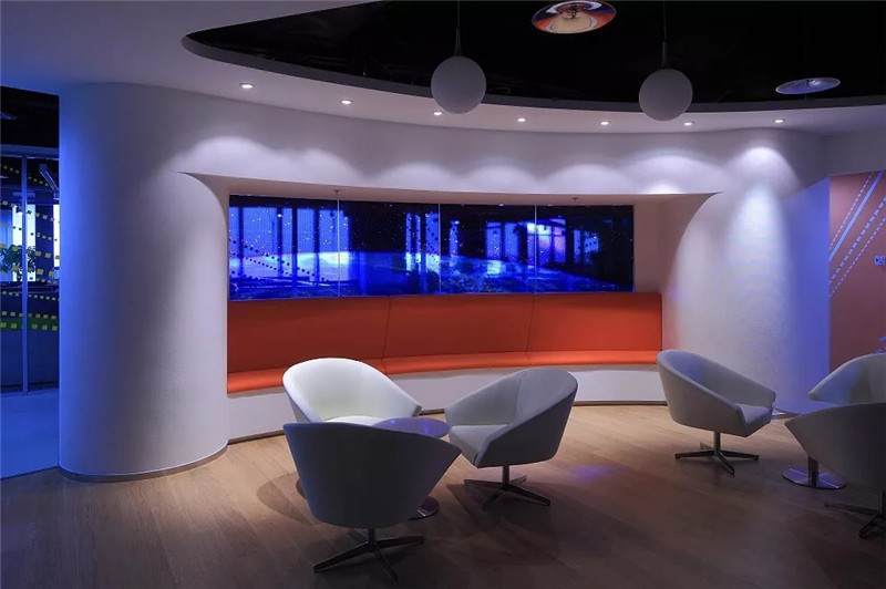 這幾張圖比較直觀的說明了第一類、第二類內容與公司的企業(yè)文化相關。例如公司的文化展墻、發(fā)展歷史展示、榮譽展示部門的團建、玻璃隔墻的貼膜裝飾墻面柱體以及部分多媒體科技展示等內容相對比較多,也是屬于辦公空間裝修中的環(huán)境圖形的設計范疇。