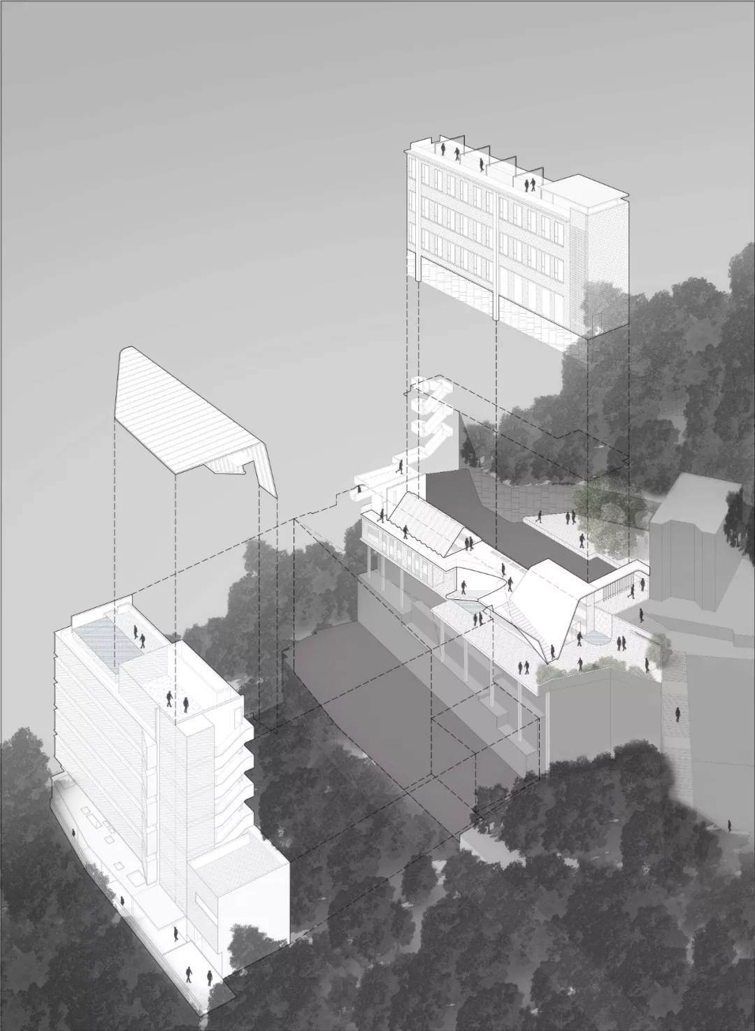 山鬼Mont Mirage邀請杭州尋常設(shè)計Usual Studio擔綱本次解放碑店的建筑及室內(nèi)設(shè)計,由主創(chuàng)設(shè)計師林經(jīng)銳操刀,該項目位于重慶市渝中區(qū)枇杷山后街影視產(chǎn)業(yè)園舊印制一廠,兩幢主體建筑順應地勢,一前一后,高低有序地坐落于坡地之上,直面壯美長江,俯瞰兩座大橋之間的綠洲,飽覽城市天際線。