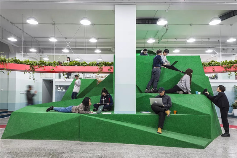 樂平基金會(huì)是一家以社會(huì)創(chuàng)新著稱的非營利機(jī)構(gòu)。在他們1100㎡的辦公空間中,我們提出的基礎(chǔ)理解是適度的身體活動(dòng)對大腦有益:劇烈運(yùn)動(dòng)通常會(huì)影響工作,但適量的活動(dòng)則反而有益。在工作的同時(shí)進(jìn)行一定程度的輕微運(yùn)動(dòng),健康的效果堪比短暫的劇烈運(yùn)動(dòng)。因此設(shè)計(jì)提供了大量邊工作邊活動(dòng)的機(jī)會(huì),豐富辦公模式,也增加休息的途徑。