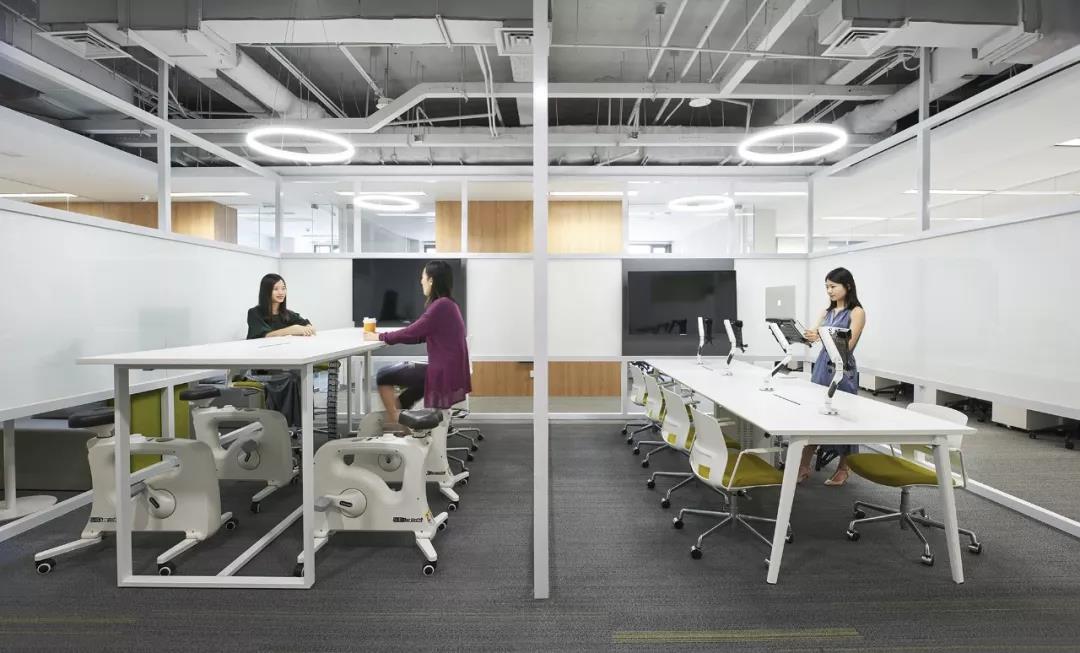 龍湖集團(tuán)辦公空間在設(shè)計(jì)初始就提出了針對員工使用健康的功能化家具體系建立,并在功能平面中單獨(dú)劃分出了功能空間,配置有站立式辦公家具及騎行式辦公家具,將鍛煉與工作相結(jié)合,增加了辦公的趣味性,也借以提醒員工培養(yǎng)良好的健康理念。